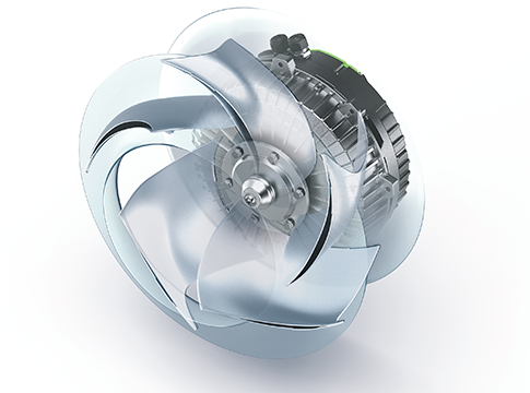 P.g.a. minimala förluster och intelligent kylning så krävs ingen ytterligare kylning av motorn. Permanentmagneter tillverkade utan sällsynta jordartsmetaller. Fläkten kan monteras både med horisontell och vertikal axel.