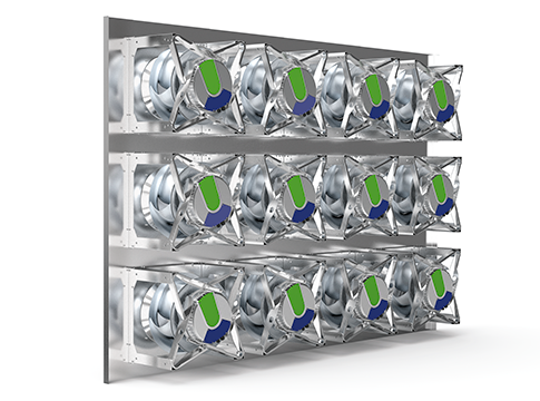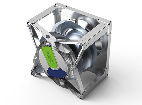 Extremt kort och kompakt inbyggnadsmodul med högsta systemverkningsgrad. Speciellt utvecklad motor- och fläkthjulsenhet. Fri från aerodynamisk obstruktion i insugsdel.